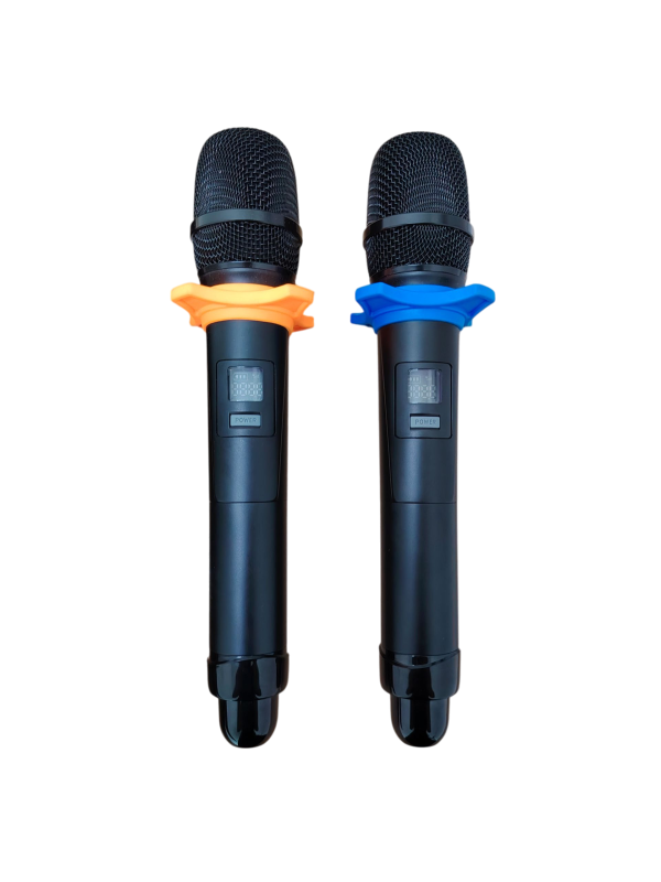 Dual wireless microphones included for instant sing-along sessions.